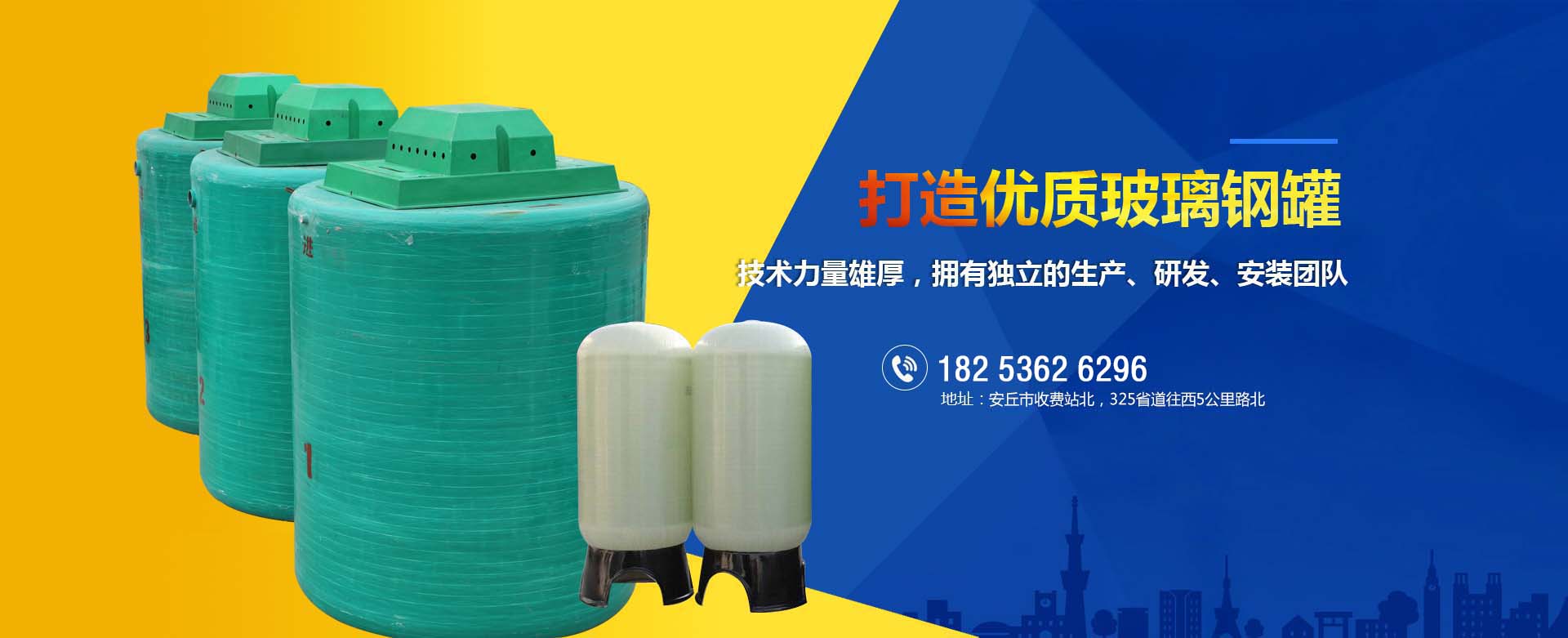 本公司主要生產的產品有:玻璃鋼生物化糞池、污水處理一體化、地埋式消防水池、隔油池、尾氣吸收塔等100多種產品,產品覆蓋20多個省市自治區(qū)。